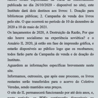 INTERRUPÇÃO DA CAMPANHA DE VENDAS DO INSTITUTO LUKÁCS